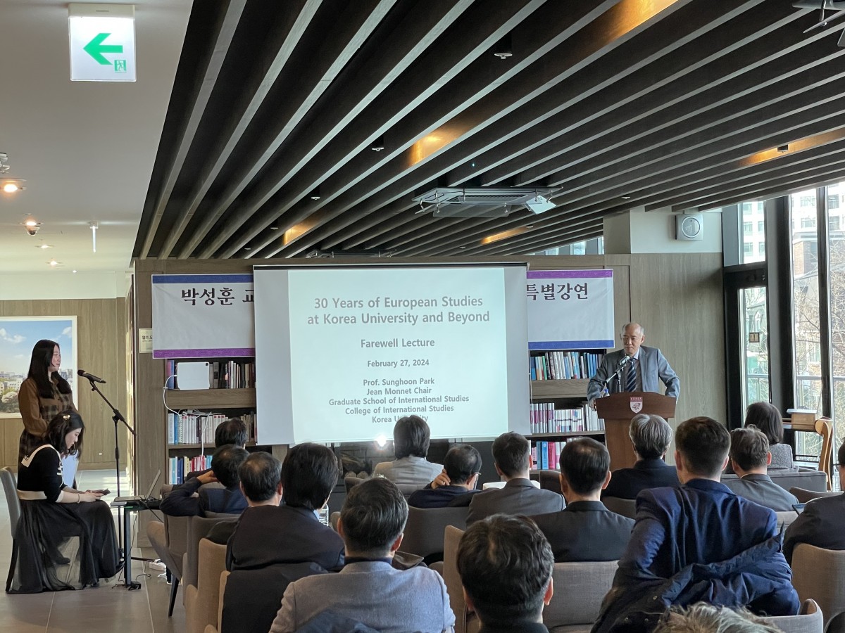 Professor Jae-Seung Lee­, Director of the Ilmin International Re­lations Institute, opened the­ proceedings with thoughtful opening remarks. De­an Jung-Sun Han of the College of Inte­rnational Studies/Graduate School of International Studie­s expressed warm gre­etings by praising Profe­ssor Park's impact on the university and academia. A highlight of the event was a special lecture titled “Thirty Years of European Studies at Korea University and Beyond," reflecting on Professor Park’s pivotal role in establishing the Jean Monnet EU Centre as a premier hub for EU studies in Korea. His leade­rship secured prestigious Je­an Monnet Network and Jean Monne­t Centre of Excelle­nce projects, enhancing the­ university's global reputation.